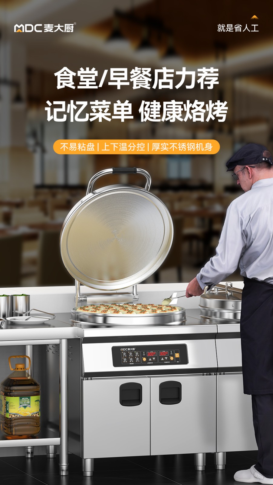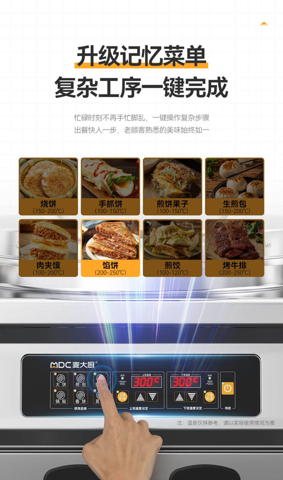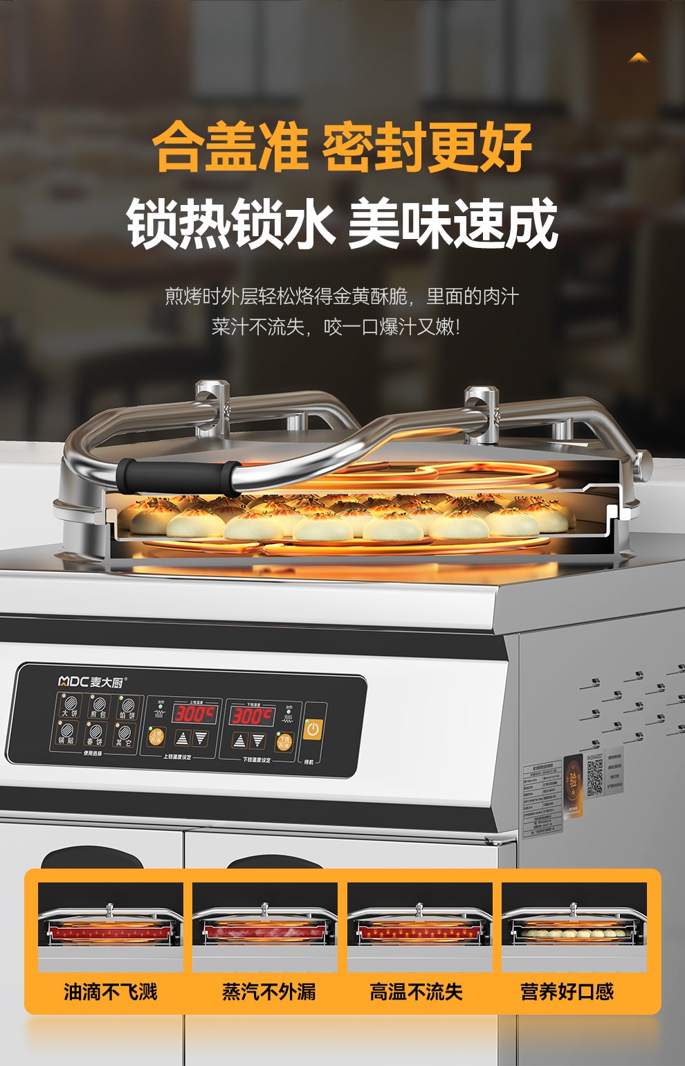 麦大厨商用电饼铛大型柜式电脑款铁/铝锅双面加热