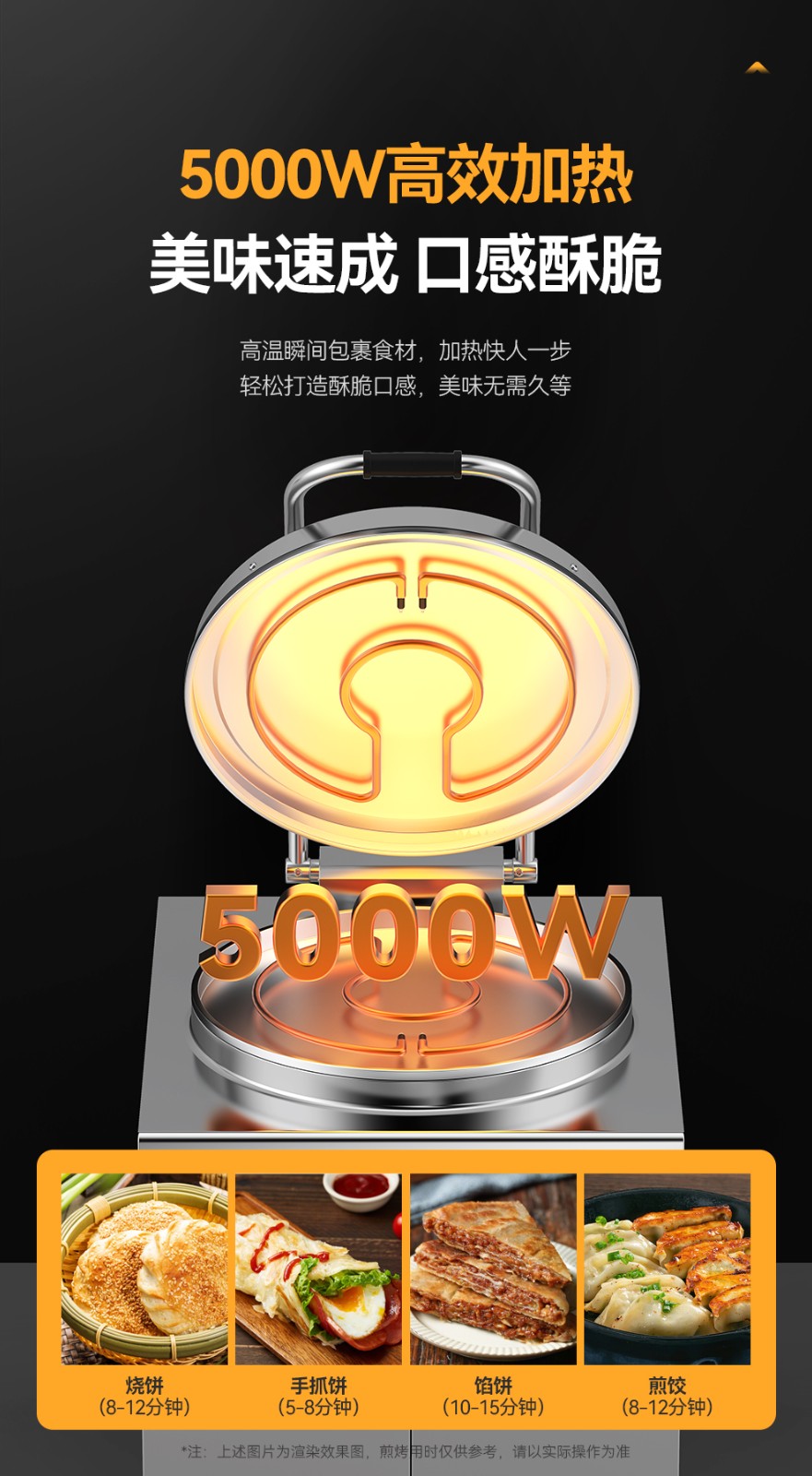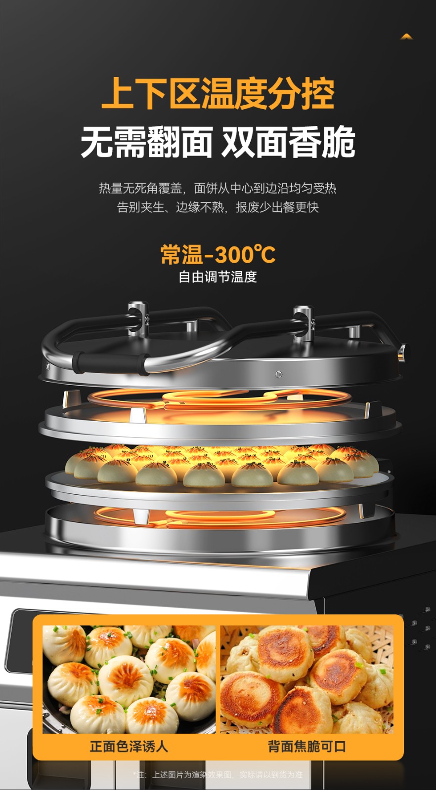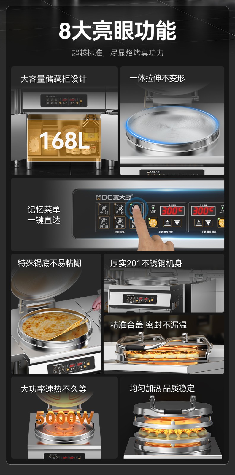 麦大厨商用电饼铛大型柜式电脑款铁/铝锅双面加热