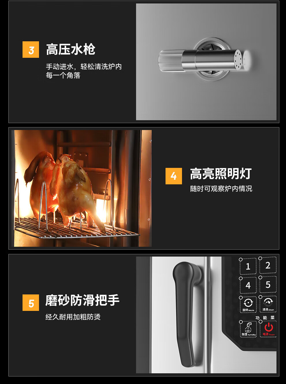 功能特征:自动清洗+微波+旋转+热风