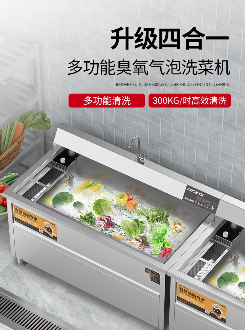 麦大厨商用洗菜机1.8米四合一多功能(气泡、冲浪、臭氧、加热)洗菜机