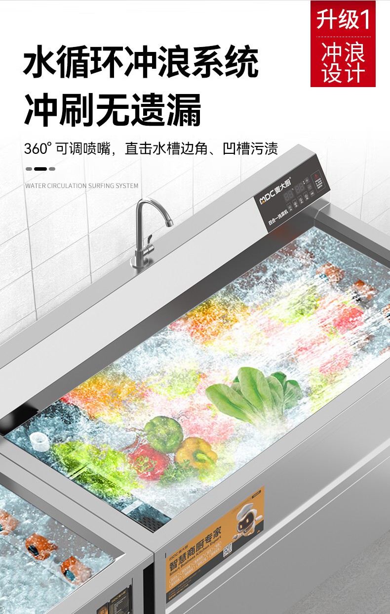 麦大厨商用洗菜机1.2米四合一多功能(气泡、冲浪、臭氧、加热)洗菜机