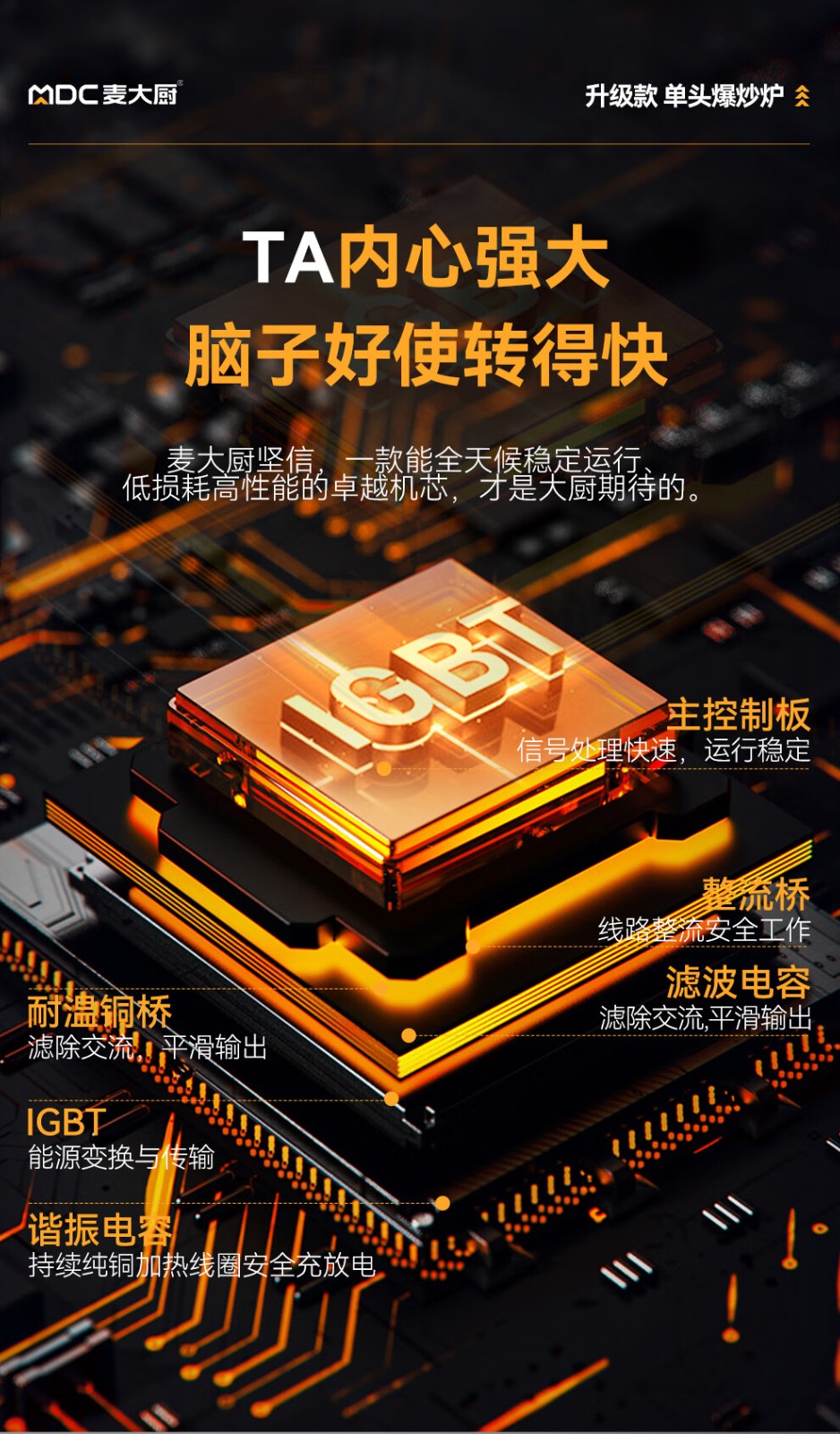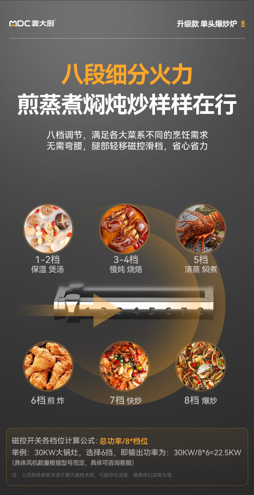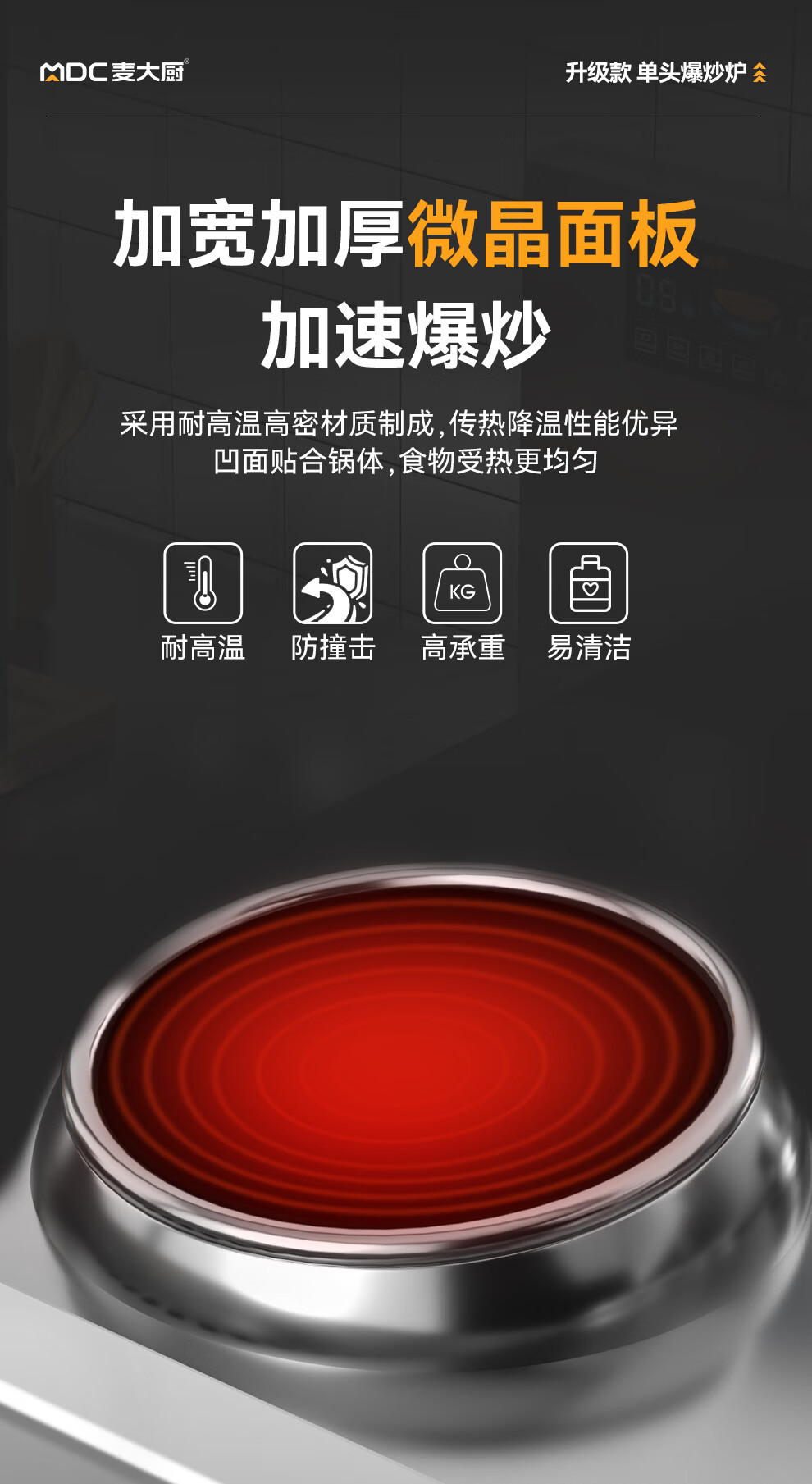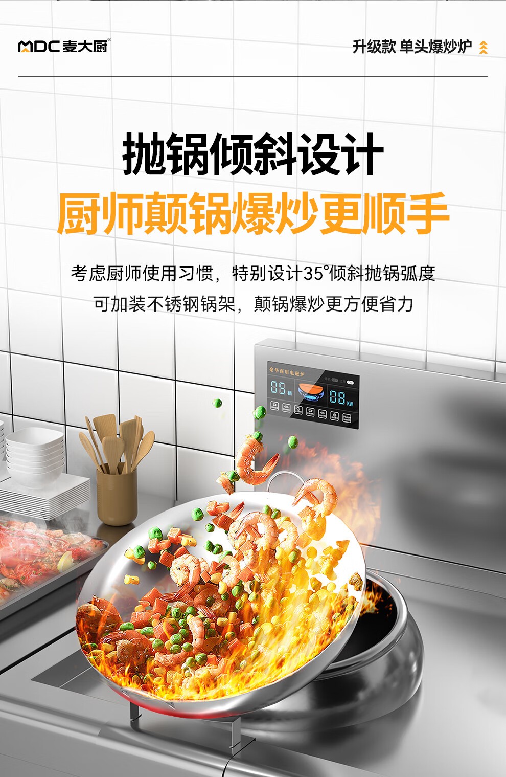 麦大厨食堂大火力电磁灶升级款单头无尾小炒炉商用15kw