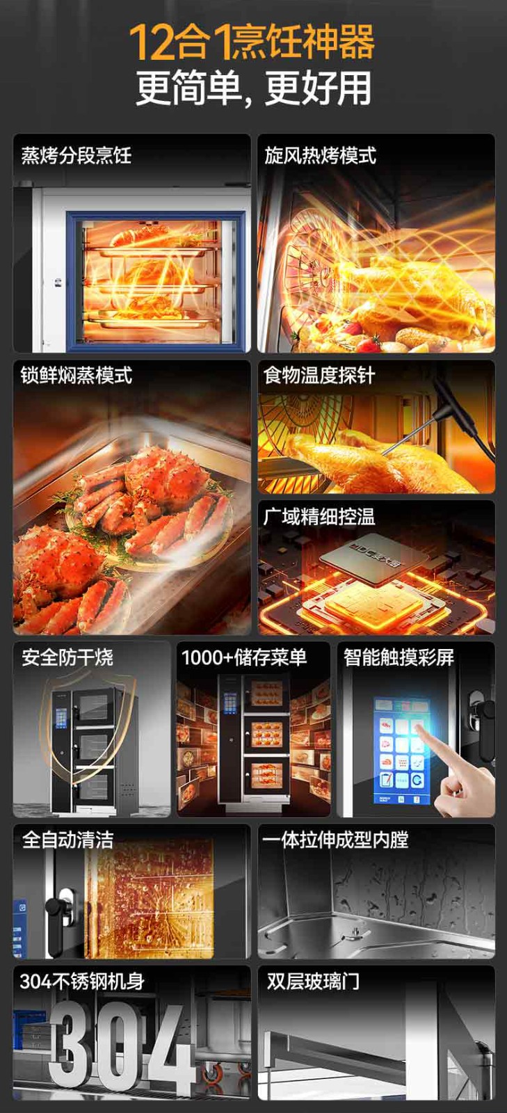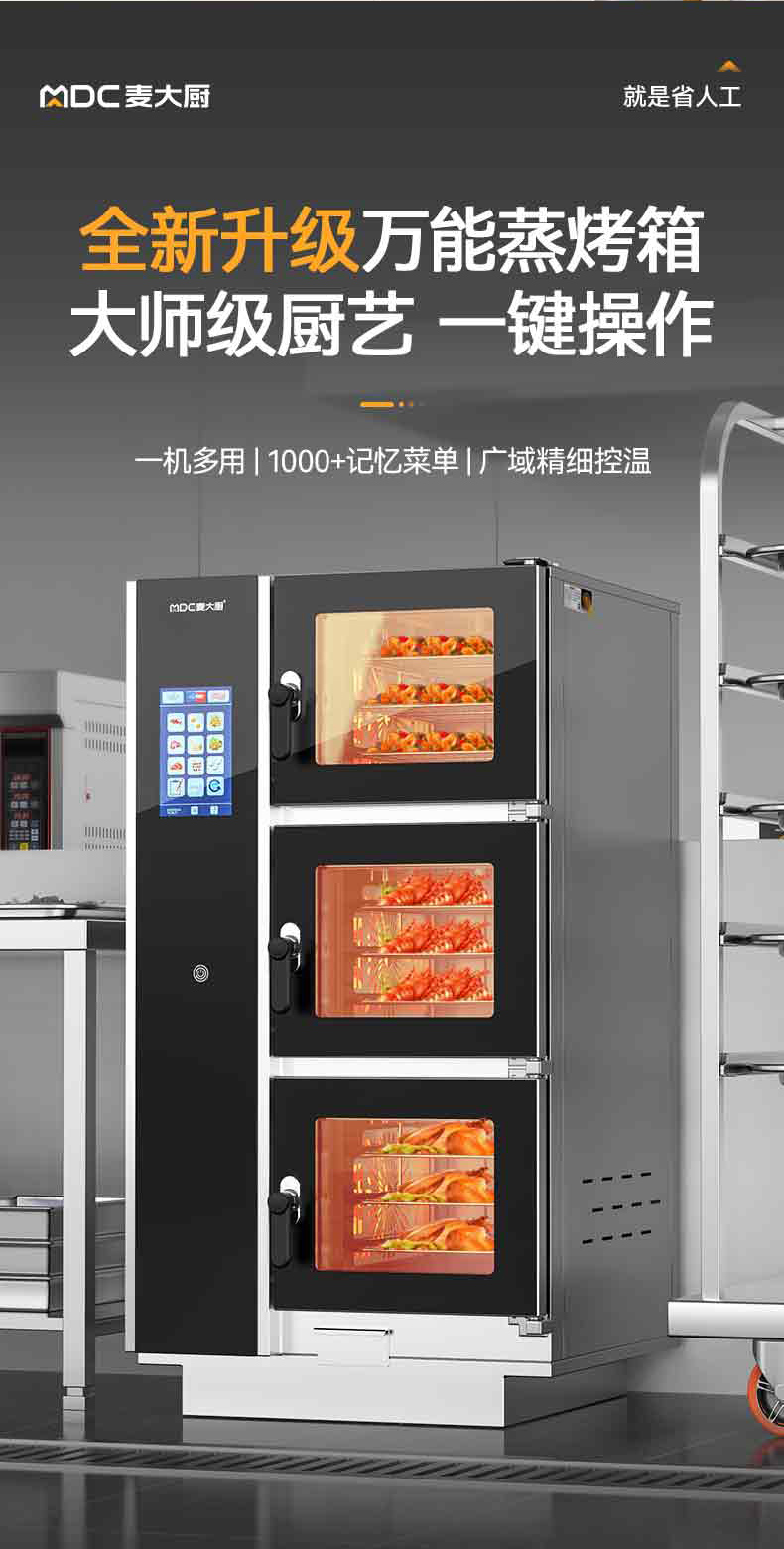 麦大厨ZKA19系列3柜组合触屏式商用万能蒸烤箱18.6kW