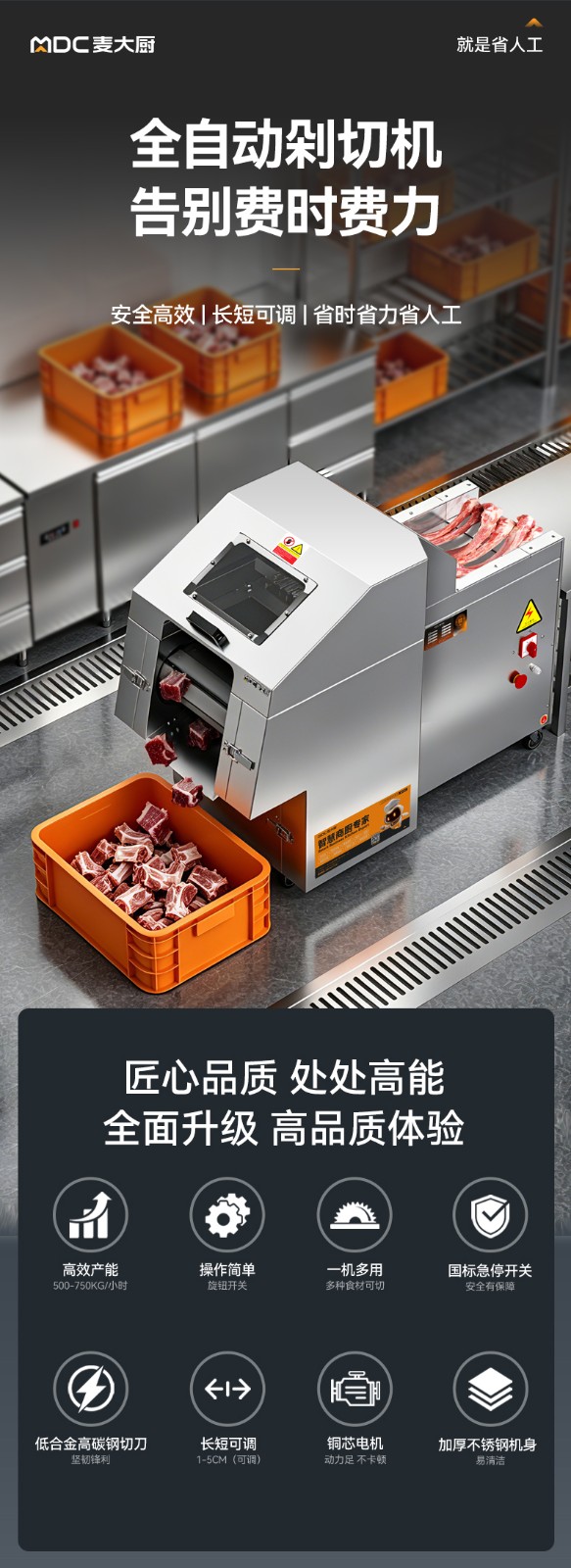 麦大厨全自动带骨切肉机商用全自动剁切肉块机多规格可调