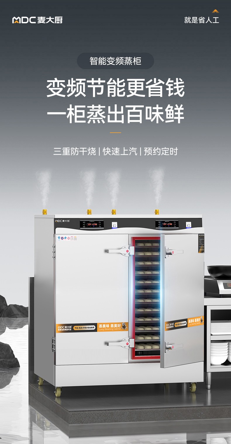 麦大厨商用蒸柜48盘变频款双门电热蒸箱蒸饭车全自动蒸饭柜